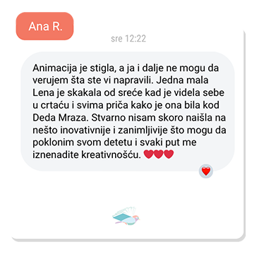 Za razliku od običnih animacija, Moja praznična čarolija je napravljena baš za vaše dete - sa njegovim imenom, likom, osobinama i jedinstvenim detaljima koji priču čine ličnom, emotivnom i nezaboravnom.